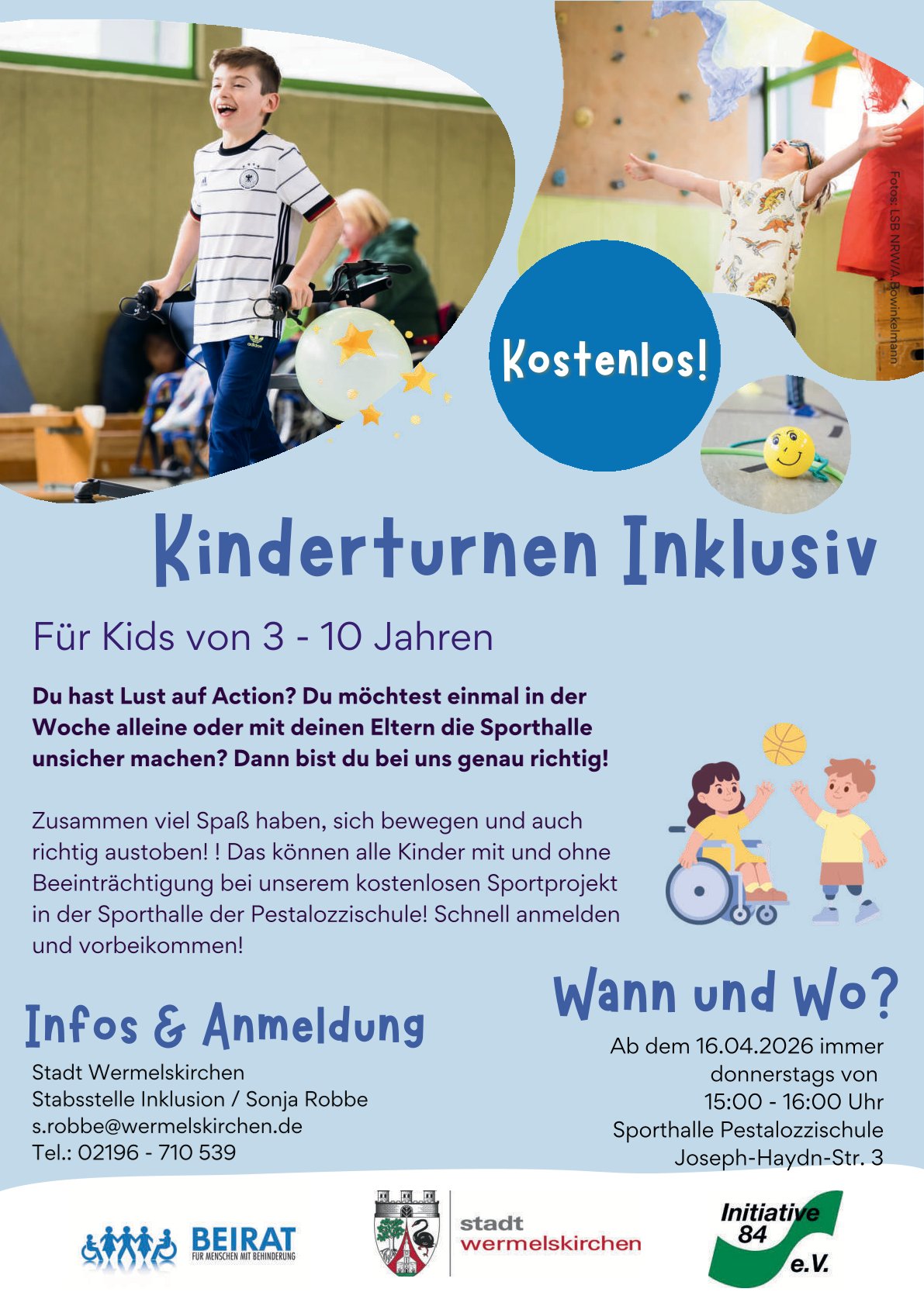 Übrigens: Die Kinder können alleine die Halle unsicher machen, oder ihre Eltern mitbringen zum inklusiven und fröhlichen Kinderturnen, das nicht nur ein Sportangebot ist, sondern ein wichtiger Baustein für eine offene, solidarische und lebendige Gemeinschaft. „Wir haben bereits einige Anmeldungen und freuen uns auf mehr Kinder, die Lust haben, dabei zu sein“, so Sonja Robbe.