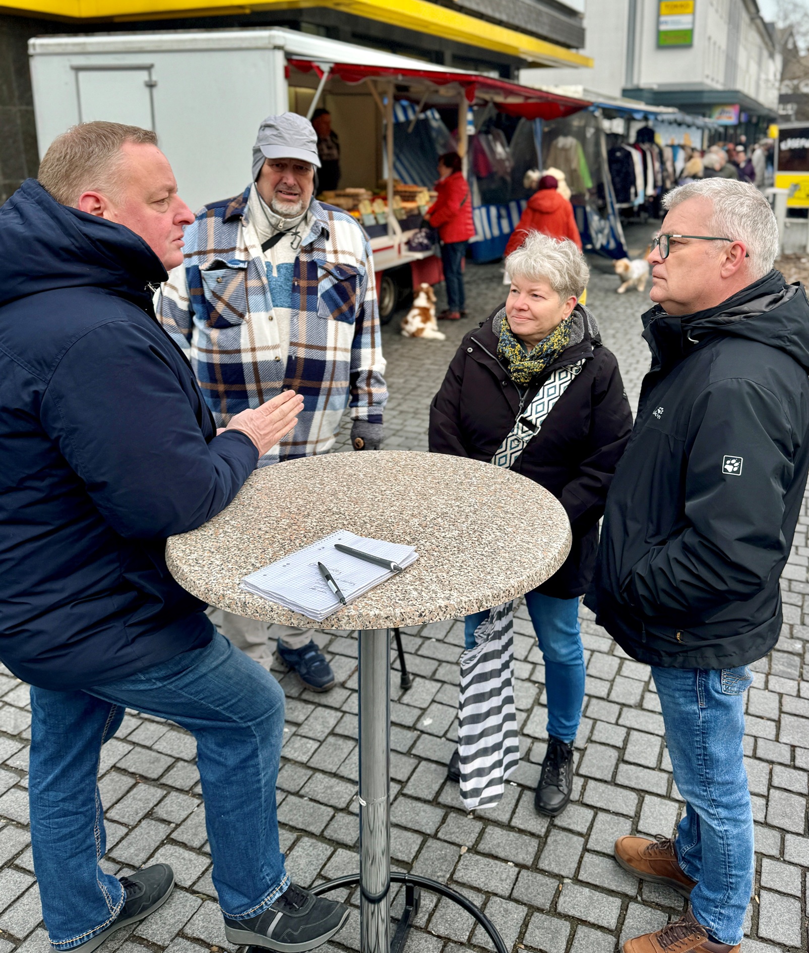 Keine vorherige Terminvereinbarung nötig: Wer unkompliziert mit dem Bürgermeister ins Gespräch kommen möchte, hat dazu bei der nächsten Wochenmarkt-Sprechstunde von Bernd Hibst am Freitag, 13. März, zwischen 10 und 12 Uhr auf der Telegrafenstraße während des Marktes Gelegenheit.