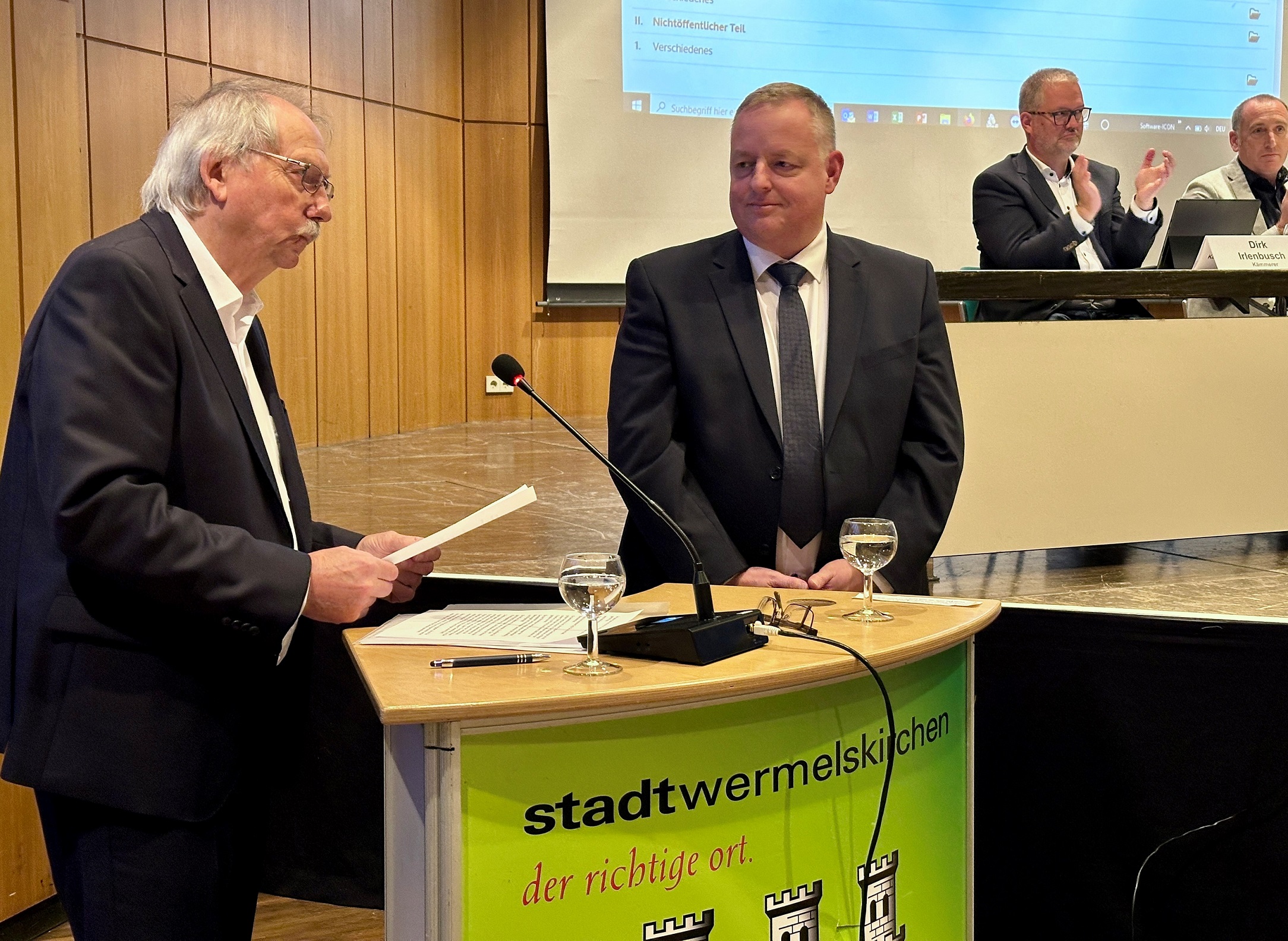 Jetzt ist es offiziell: Wermelskirchen hat mit Bernd Hibst einen neuen Bürgermeister. Entsprechend der Gemeindeordnung nahm Norbert Galonska die Amtseinführung und Vereidigung des neuen Stadtoberhauptes vor. Diese Rolle kam ihm zu, weil Norbert Galonska das älteste, am längsten ununterbrochen dem Rat angehörende Mitglied (seit 1989) ist.