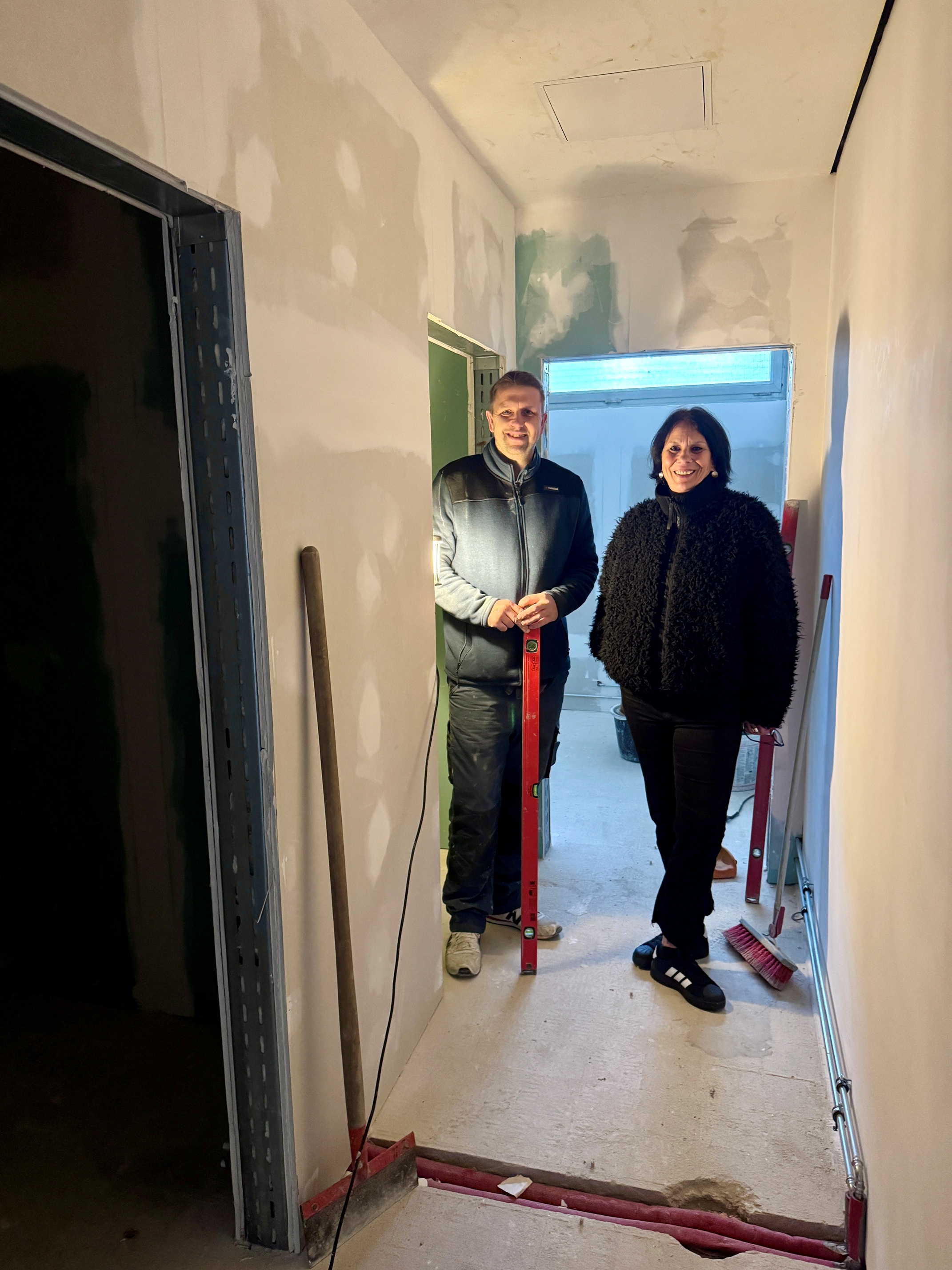 Bereits abgeschlossen sind die Gewerke des Entkernens des Altbestandes, der Trockenbau, die Putzarbeiten sowie das Verlegen von Leitungen und Rohren.