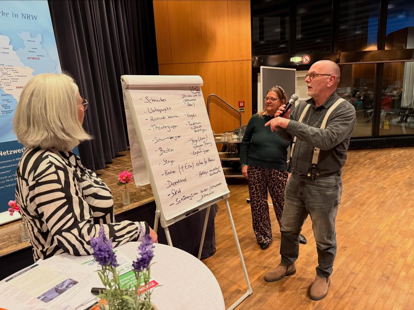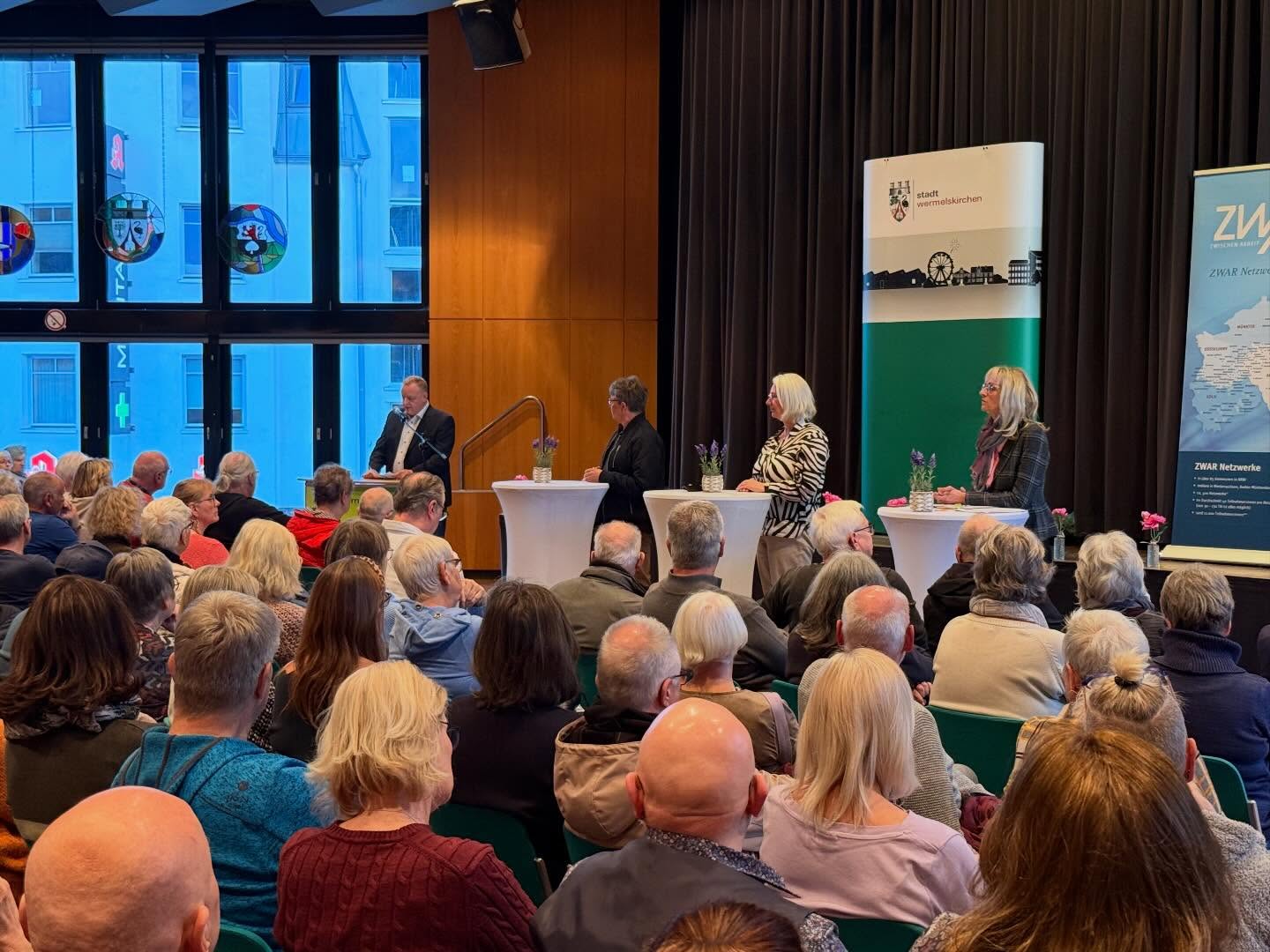 Das bestätigte auch Hans-Albert Kausemann vom ZWAR-Netzwerk Wipperfürth, der in Wermelskirchen von seinen Erfahrungen berichtete. „Als ich noch berufstätig war, habe ich Kollegen erlebt, denen es nicht leichtgefallen ist, mit dem neuen Lebensabschnitt klar zu kommen“, erzählte er im Gespräch mit Ute Schünemann-Flake auf dem Podium. „Da wollte ich Vorsorge treffen.“ Deswegen folgte er 2019 dem Einladungsschreiben zur Netzwerkgründung in seiner Heimatstadt. Nun ist er dort seit sieben Jahren im Wipperfürther ZWAR-Netzwerk aktiv, moderiert die Basisgruppentreffen und freut sich über einen vollen Terminkalender und neue Kontakte.