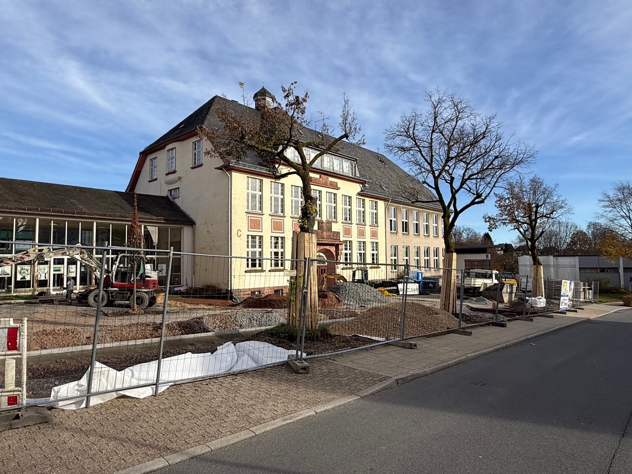 Die Arbeiten auf dem Platz an der Stockhauser Straße sollen bis Weihnachten beendet sein. Für die weggefallenen Lehrerparkplätze hat die Stadt eine Alternative gefunden.