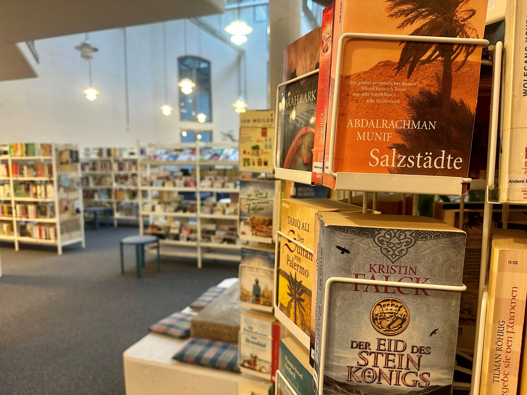 Eine außergewöhnliche Glanzleistung: Nach dem Brand im Sommer 2024 schaffte es das Stadtbücherei-Team etwa eineinhalb Jahr lang in Ausweichquartieren den Betrieb aufrecht zu erhalten – erst im ehemaligen Baumarkt in Tente, dann im vormaligen Kreuder-Ladenlokal an der Thomas-Mann-Straße.
