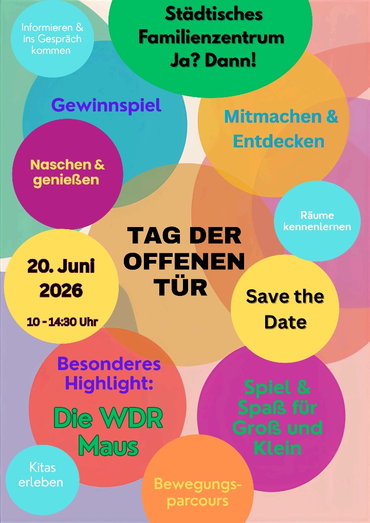 Save the Date 20. Juni 2026 10.00 - 14.30 Uhr - Familienzentrum Ja? Dann? Wermelskirchen