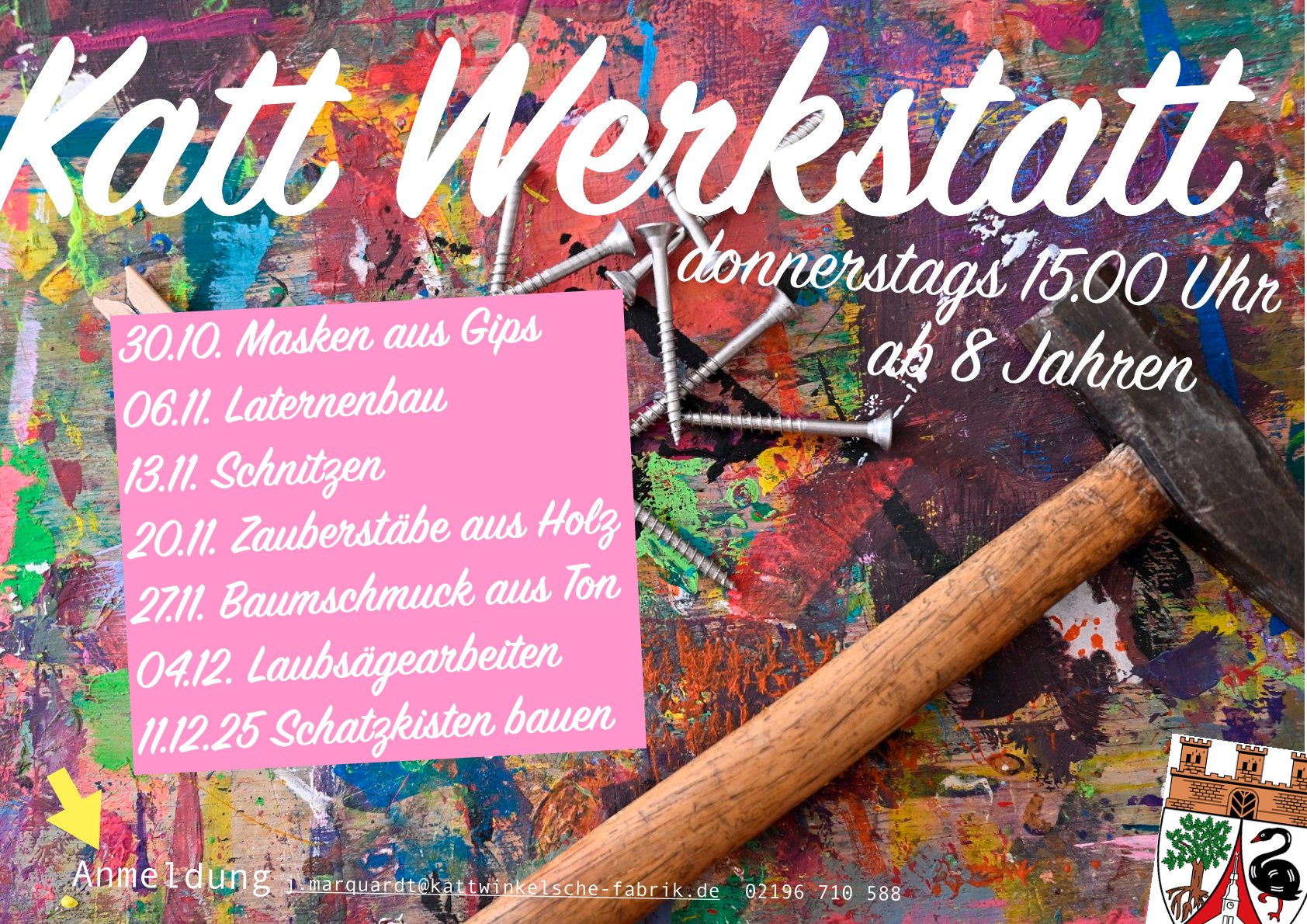 Anmeldungen bitte an Jan Marquardt per Mail an j.marquardt@kattwinkelsche-fabrik.de oder telefonisch unter 02196 / 710-588.